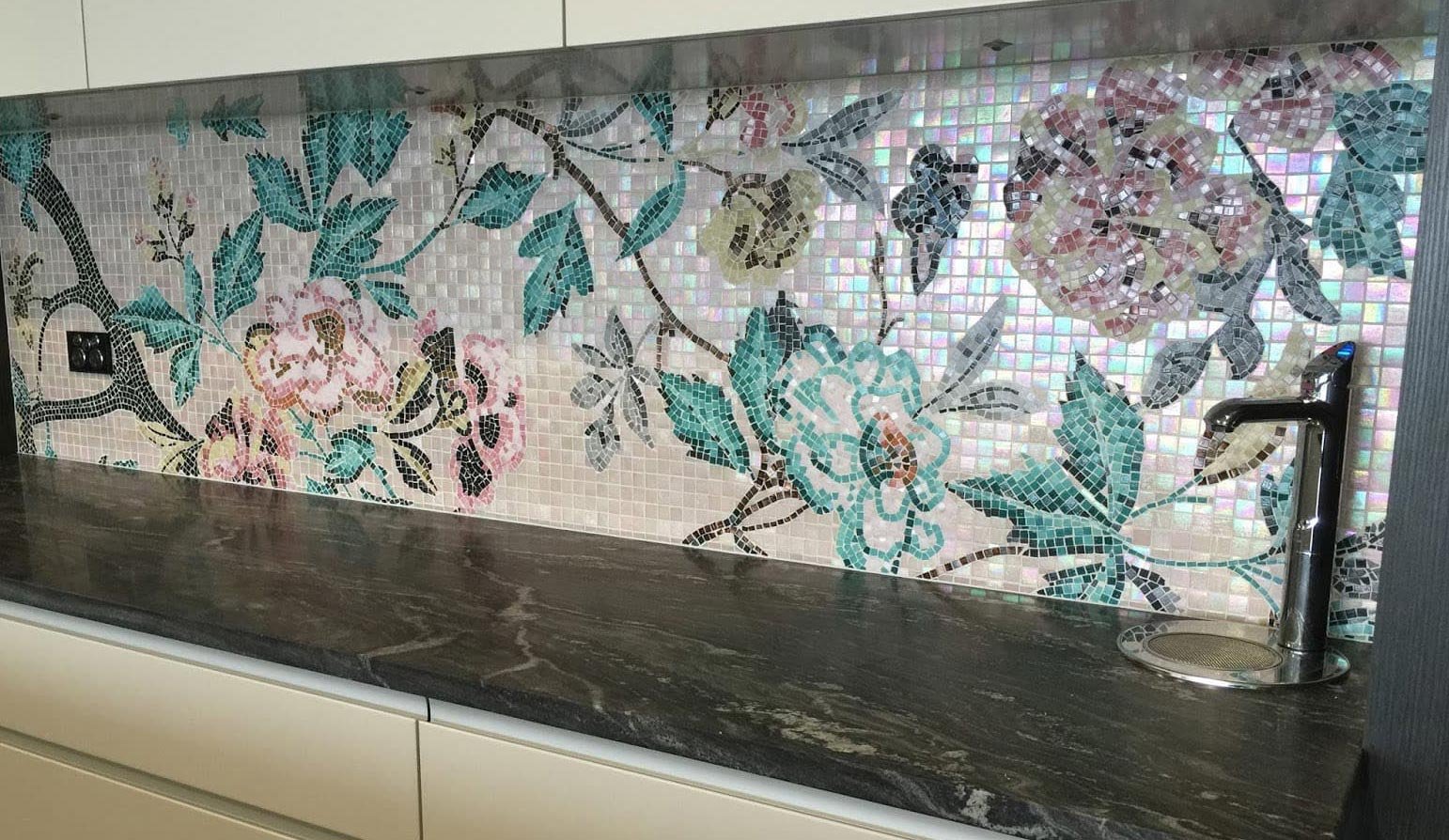 Панно из стеклянной мозаики с цветочным рисунком — это яркий и оригинальный элемент интерьера кухни. Такое панно создаёт атмосферу уюта и тепла, а также добавляет пространству индивидуальности. Стеклянная мозаика может быть использована для отделки стен, пола и кухонного фартука. Она обладает высокой прочностью, стойкостью к влаге и загрязнениям, а также имеет множество вариантов дизайна.