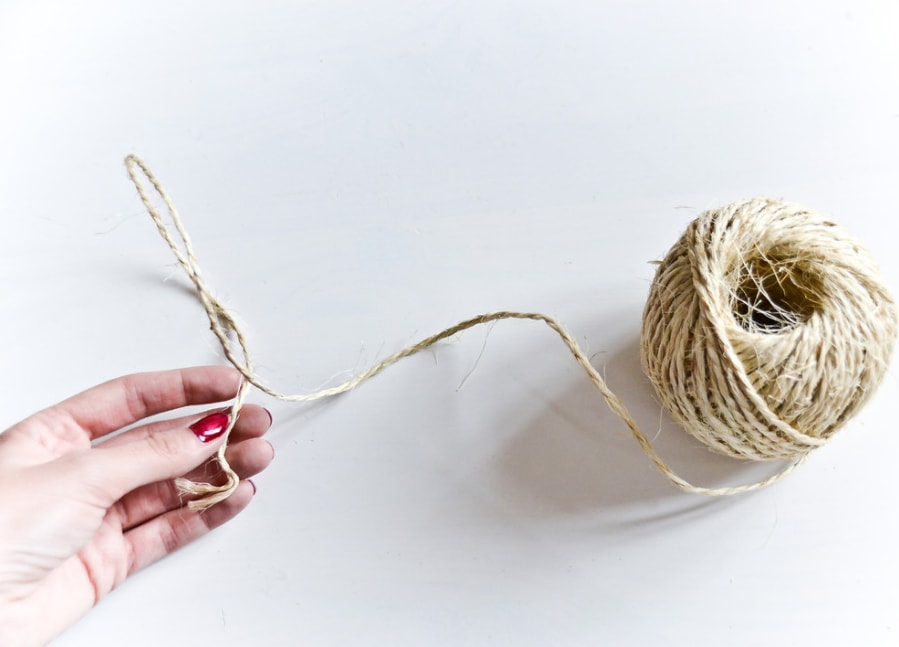 Отрезаем необходимый кусок веревки исходя из желаемого размера гирлянды. Учитывайте, что в процессе придется делать узлы, поэтому должен быть небольшой запас длины.