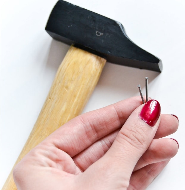 Фиксируем на стене два гвоздя, чтобы прикрепить гирлянду из листьев.