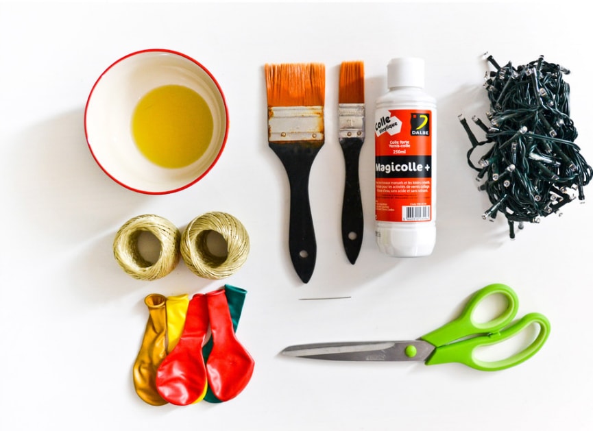 Бечевку разрезаем на одинаковые отрезки, исходя из количества шариков.