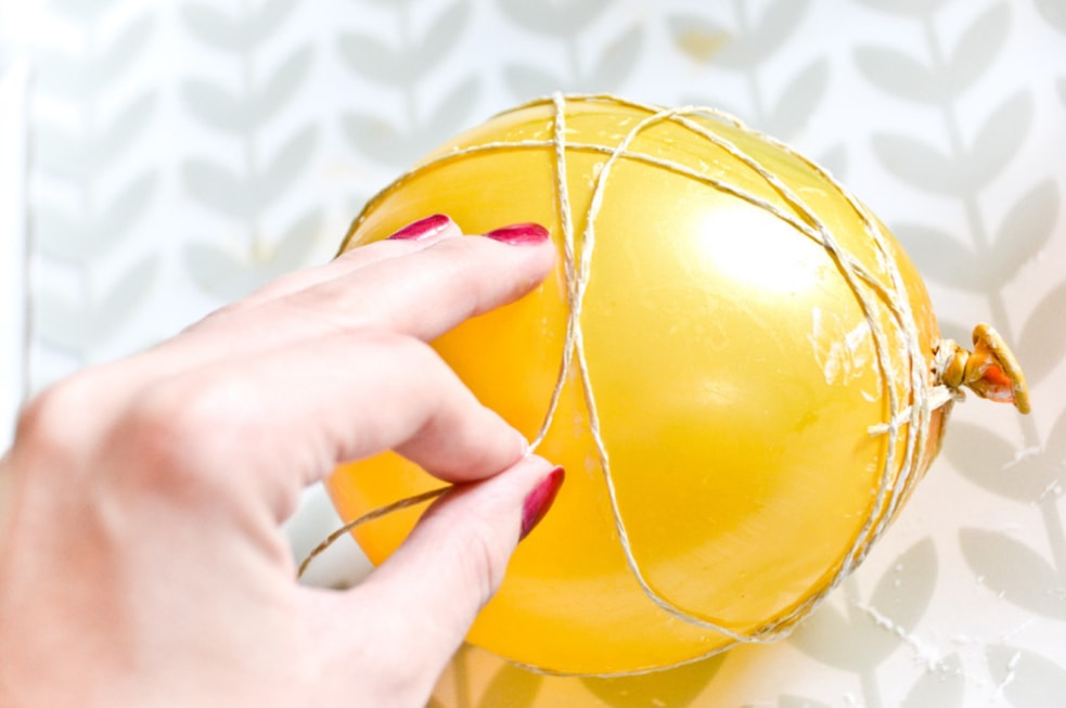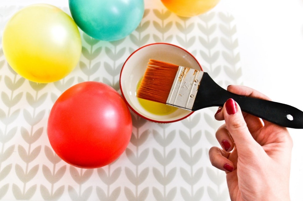 Покрываем поверхность шарика маслом, чтобы веревка к нему не прилипала.