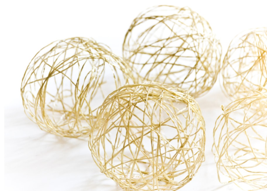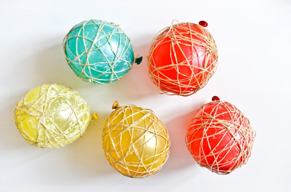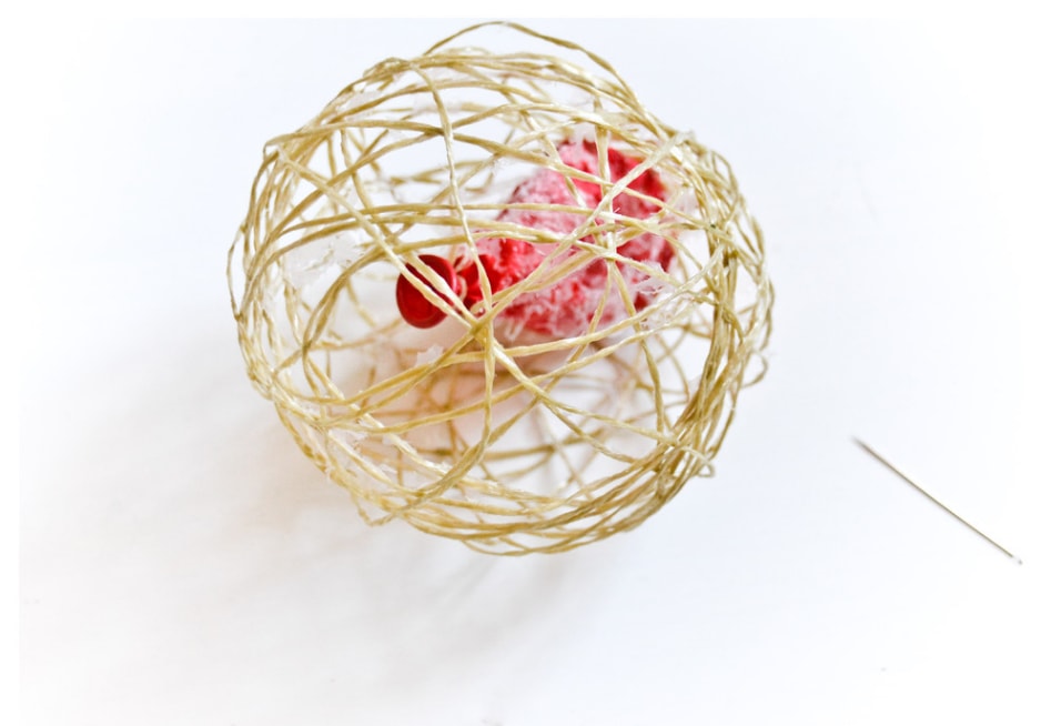Оборачиваем каждый шарик отрезком бечевки в произвольном порядке.