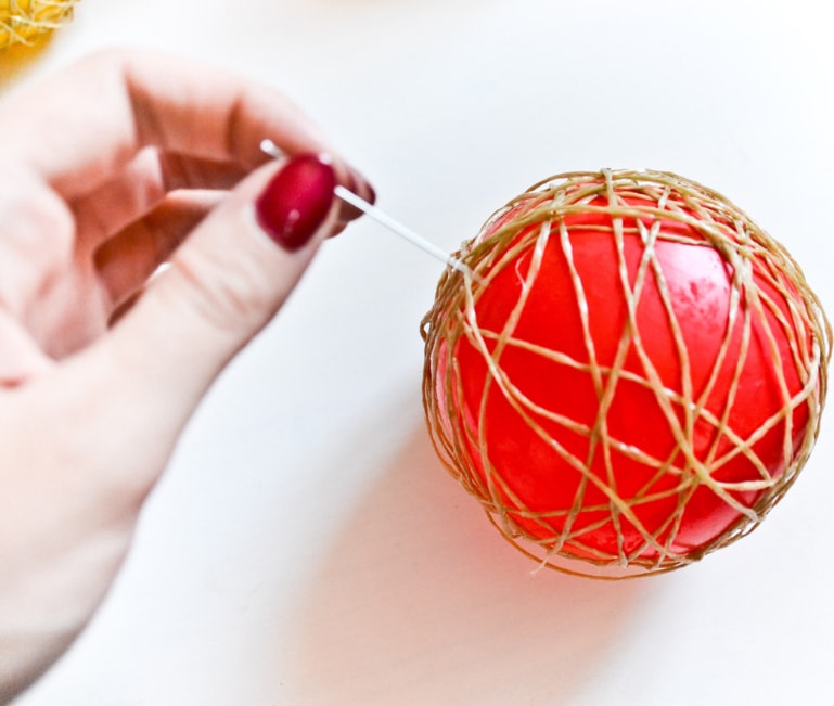 Аккуратно прокалываем каждый шарик и извлекаем его.