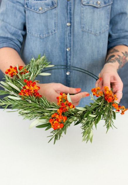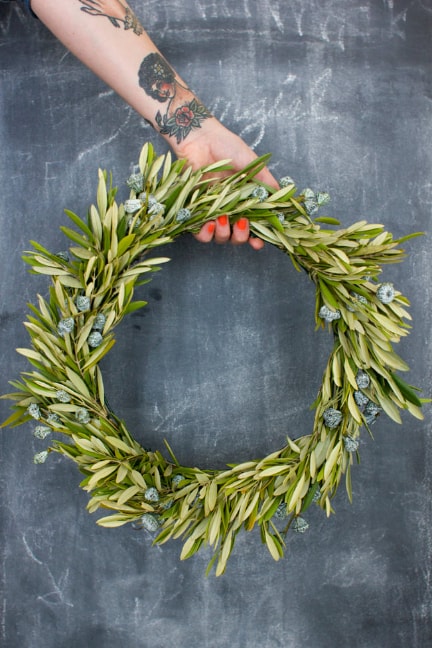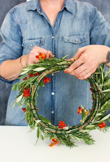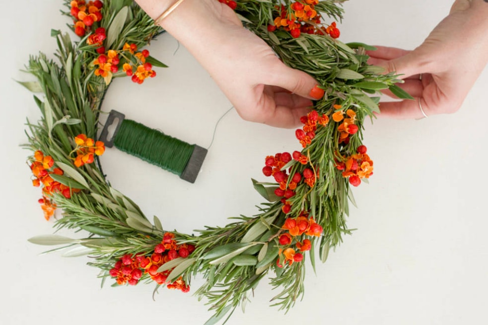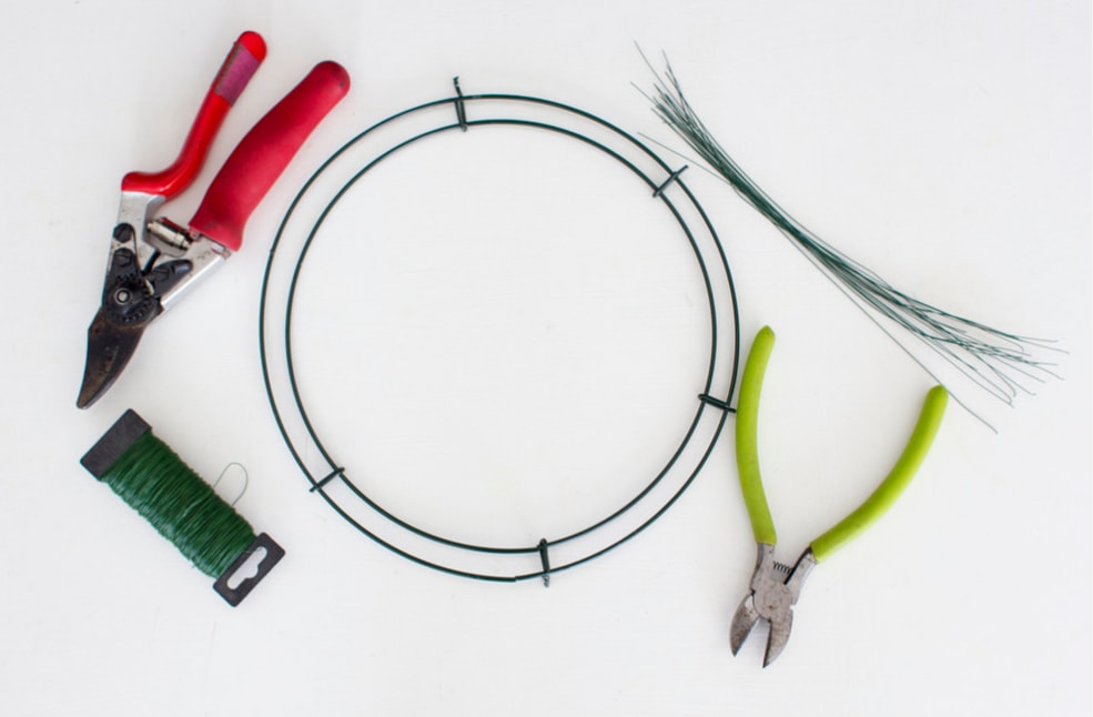 С внутренней стороны венка прикрепляем отрезок проволоки, чтобы можно было его повесить.