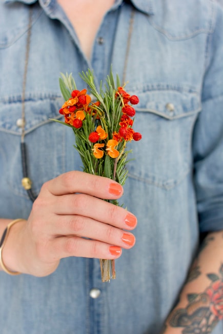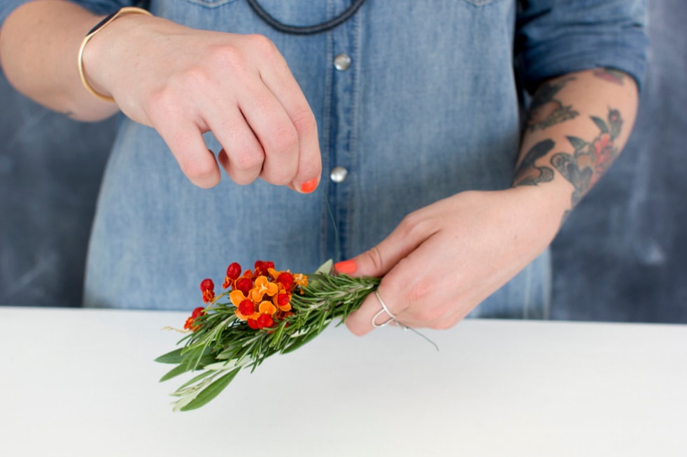 Оборачиваем букетик проволокой и надежно закрепляем конец.