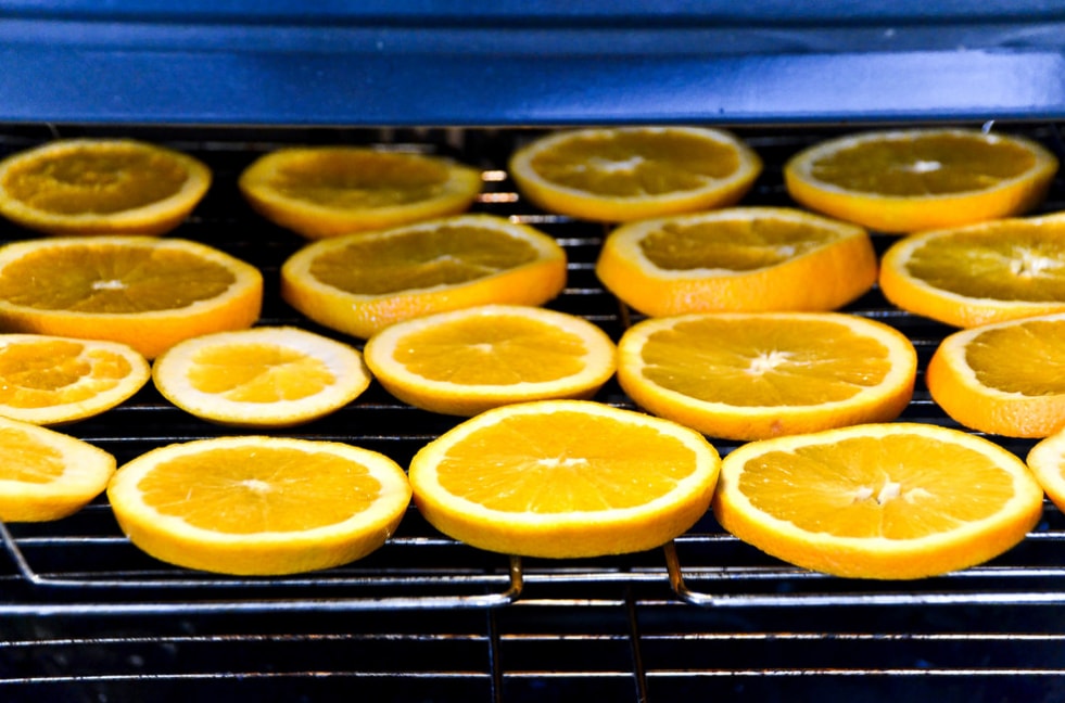 Ставим решетку в духовку, разогретую до 80˚ не меньше, чем на час. Рекомендуем каждые 30 минут смотреть на состояние долек апельсина, чтобы они получились достаточно сухими.