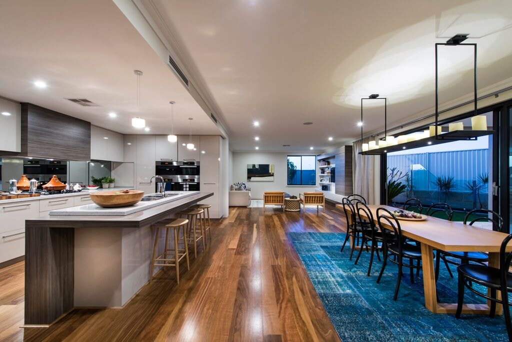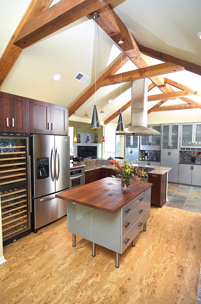 Деревянный пол теплый и безопасный, он также прекрасно работает на кухне. Подходит практически к любому стилю: