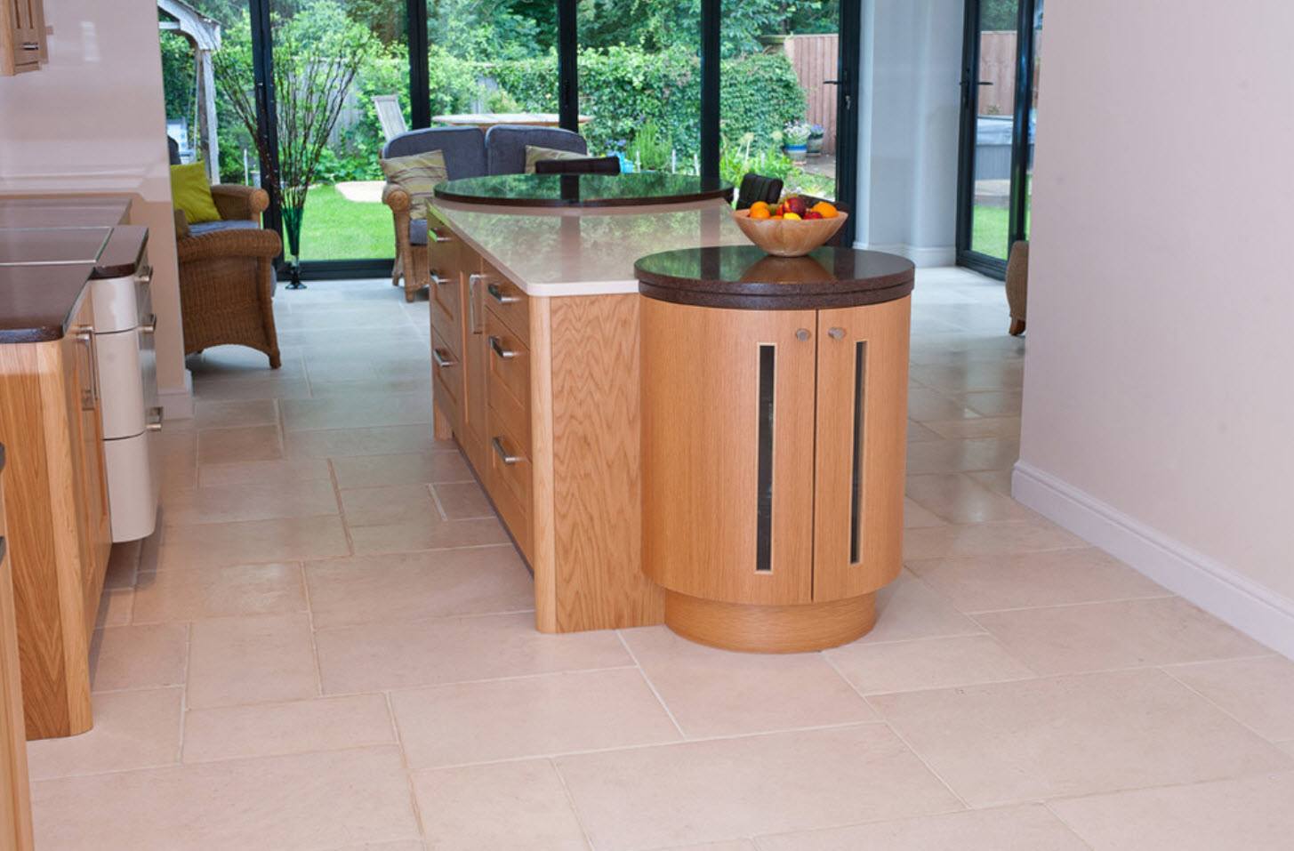 Материал может иметь больший формат, чем керамическая плитка и тонкие соединительные швы, что дает эффект однородной поверхности. Однако помните, что каменный пол холодный и обычно дороже керамики.