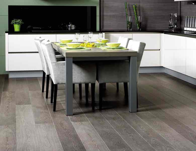 В настоящее время серый очень популярен в интерьерах. Сегодня вы можете выбрать расцветки в нескольких оттенках. Среди них доски: белая и серая жемчужина. Серый пол очень хорошо вписывается в кухни с белой и коричневой мебелью.