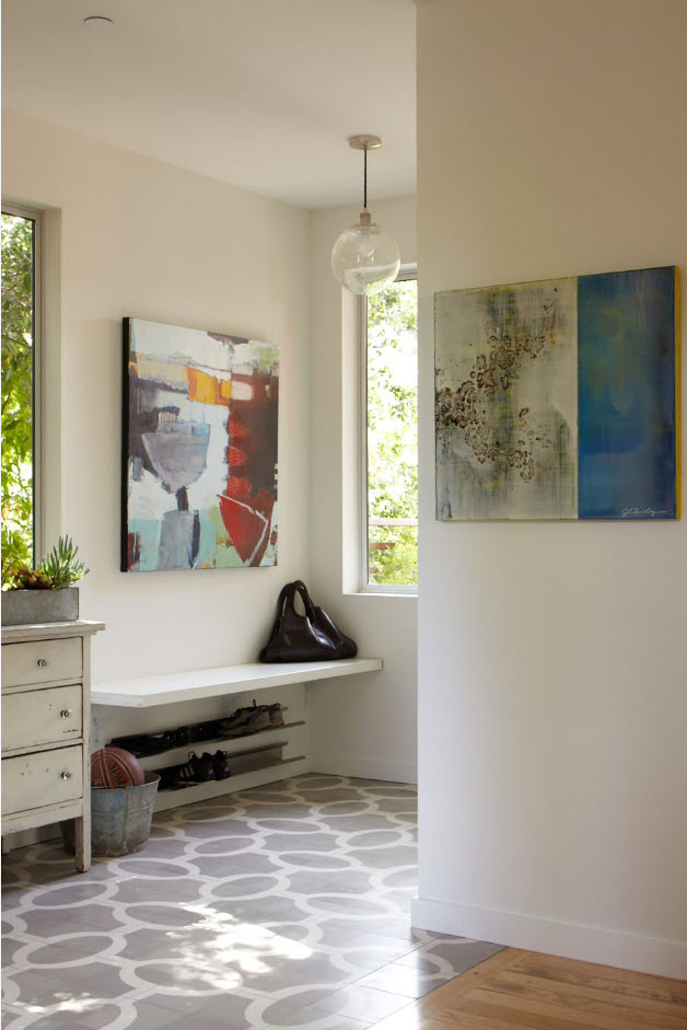 Открытые полки для обуви в прихожей – не столько дизайнерский ход, сколько житейская необходимость. В зависимости от количества членов семьи, необходимо учесть размеры полок для расположения нескольких пар обуви, необходимых семейству для ежедневной носки. Если ваша прихожая не может похвастать достаточной площадью (частый случай для квартир в зданиях времен постройки прошлого века), то рациональнее расположить одну или две полки под вешалкой для верхней одежды или систем хранения в виде шкафа.