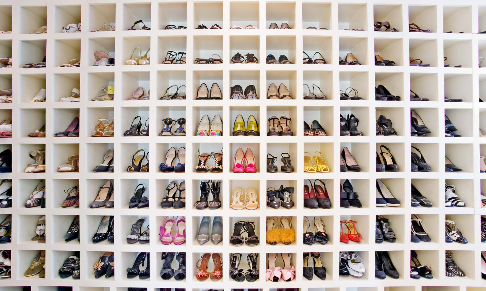 - необходимо отсортировать всю обувь по типу и выяснить количество пар высоких моделей (сапоги и ботфорты, которые необходимо хранить не сгибая голенища), обуви на шнурках (ее можно подвешивать на крючки) и число пар на каблуках (их удобно располагать на тонких металлических рейках или толстой проволоки).