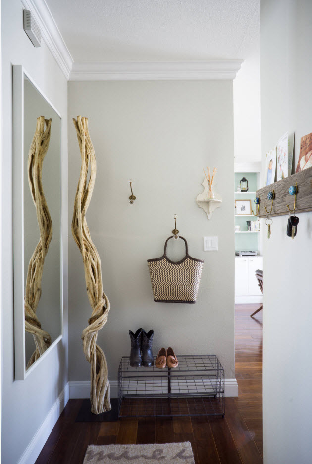 В дизайне всегда есть место для креатива. Оставьте идею с обычными полками для обуви, если ваши вкусовые предпочтения и размеры прихожей позволяют – используйте оригинальные дизайнерские решения. Необычная деревянная «змейка»м с разным расстоянием между полками для обуви всевозможных моделей станет изюминкой вашего интерьера.