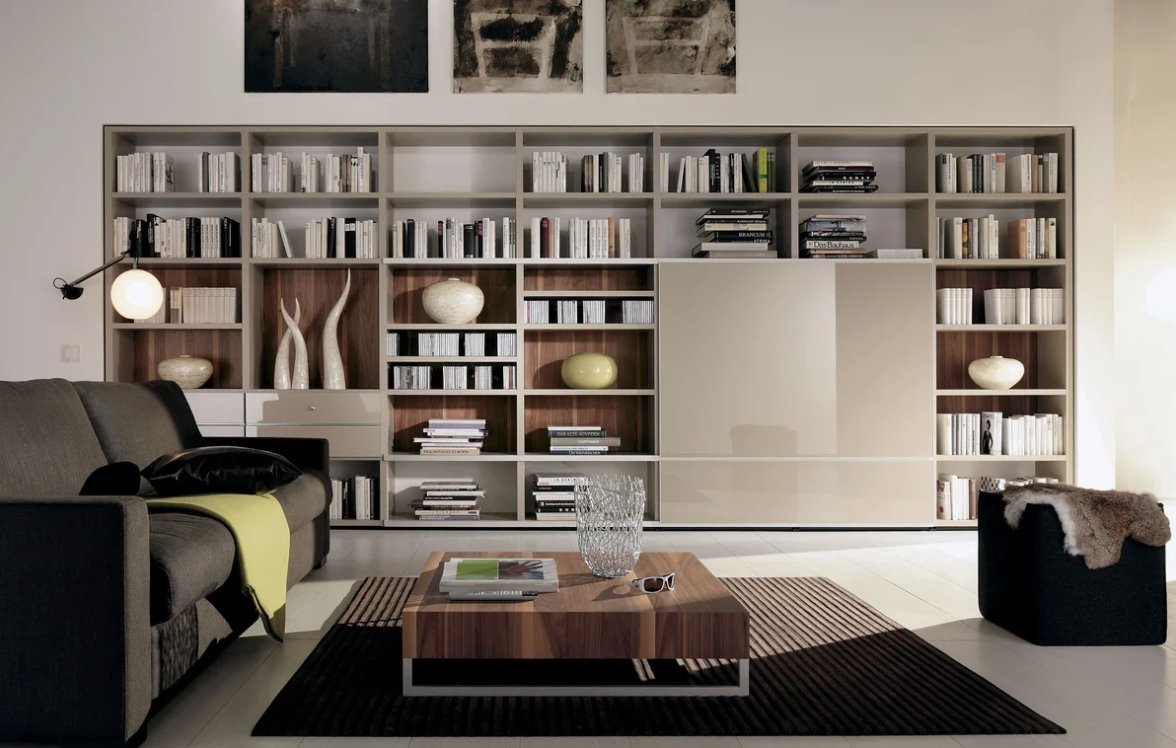В гостиной есть мебель, которую нельзя игнорировать. В конце концов, это место, где у вас обычно самые большие возможности для создания красивого декора. Ни одна другая комната не может лучше демонстрировать гостям аксессуары и украшения. Гостиная также является отличным местом для демонстрации того, чем вы гордитесь. Так что, если являетесь владельцем целой серии своих любимых книг или можете похвастаться большой коллекцией DVD-фильмов, нет смысла прятать их от мира глубоко в шкафах, а стоит поставить на всеобщее обозрение. Полки — это место, которое отлично подходит для этой цели.