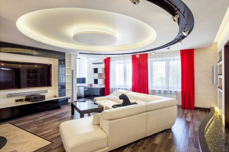 Потолок в гостиной — разнообразие идей