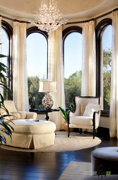 Рафинированность выбранного стиля подчеркивается наличием в комнате рояля и некоторыми элементами классического стиля. Металлические вензеля на люстрах прекрасно дополняют общую картину.