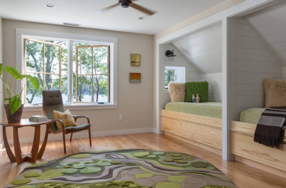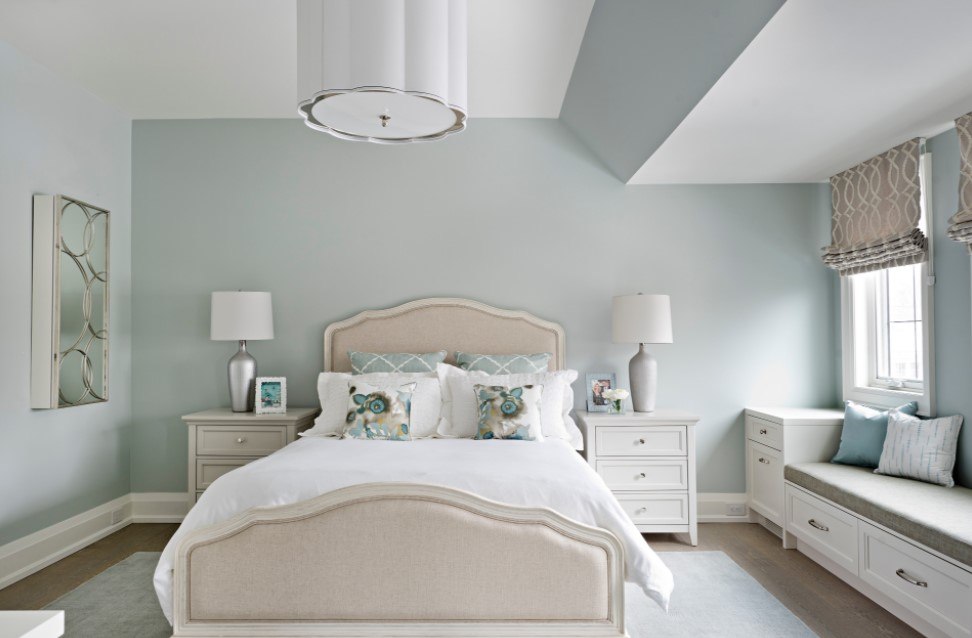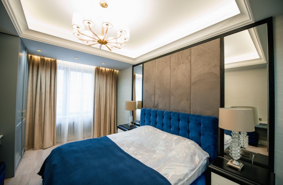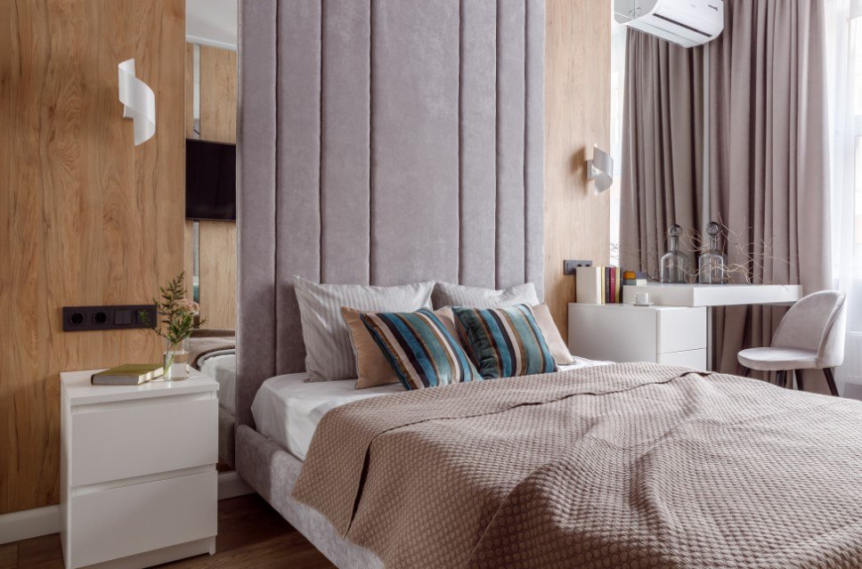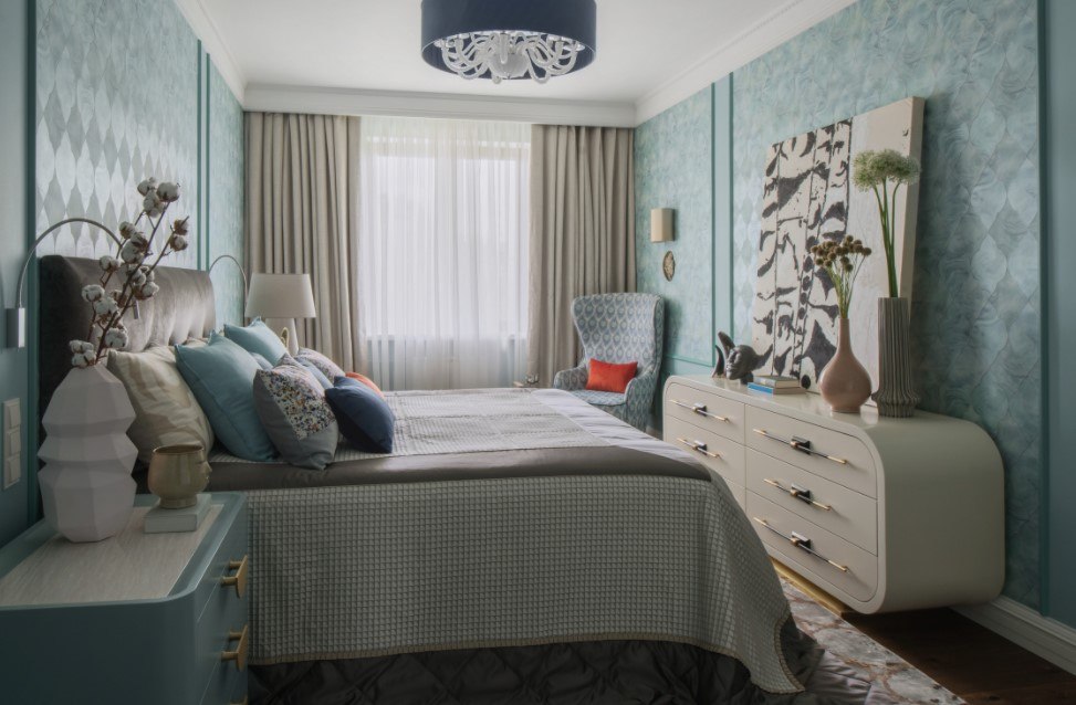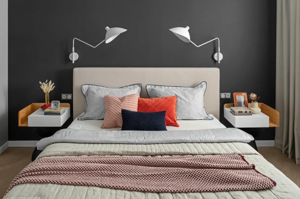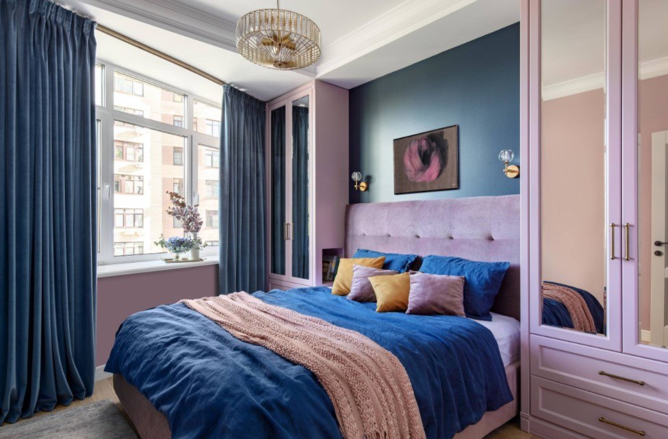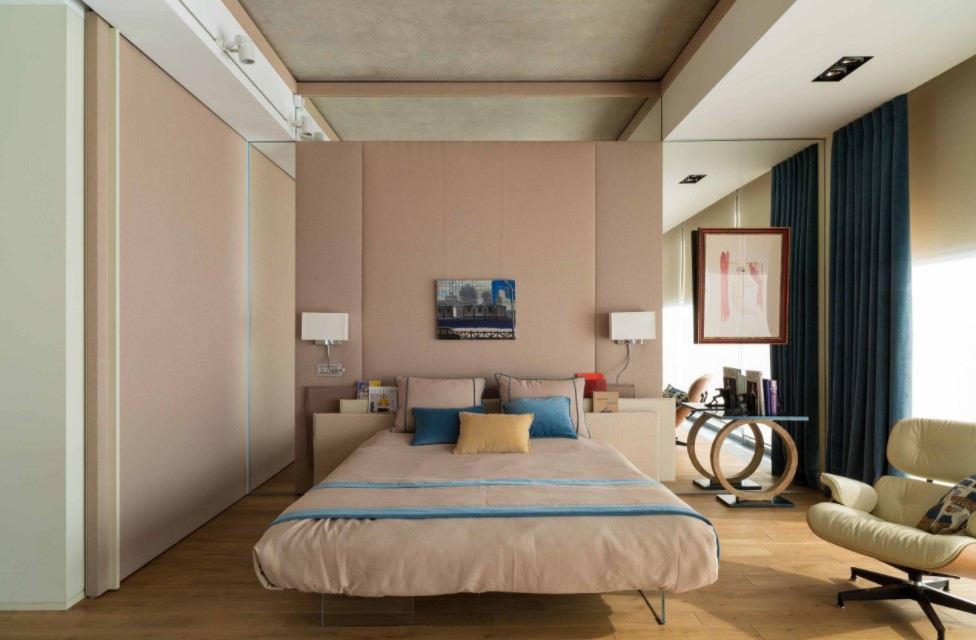 С выбором цветовой палитры нужно быть осторожнее. Ведь помимо визуальных эффектов, которыми допустимо увеличить пространство, цвет должен создавать благоприятную атмосферу для сна и отдыха.