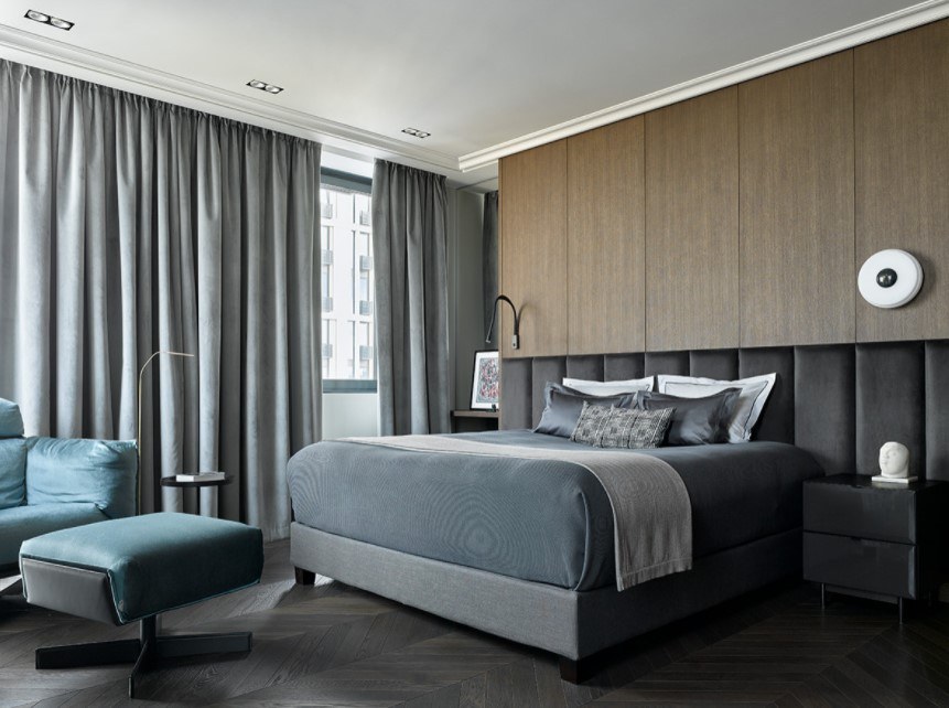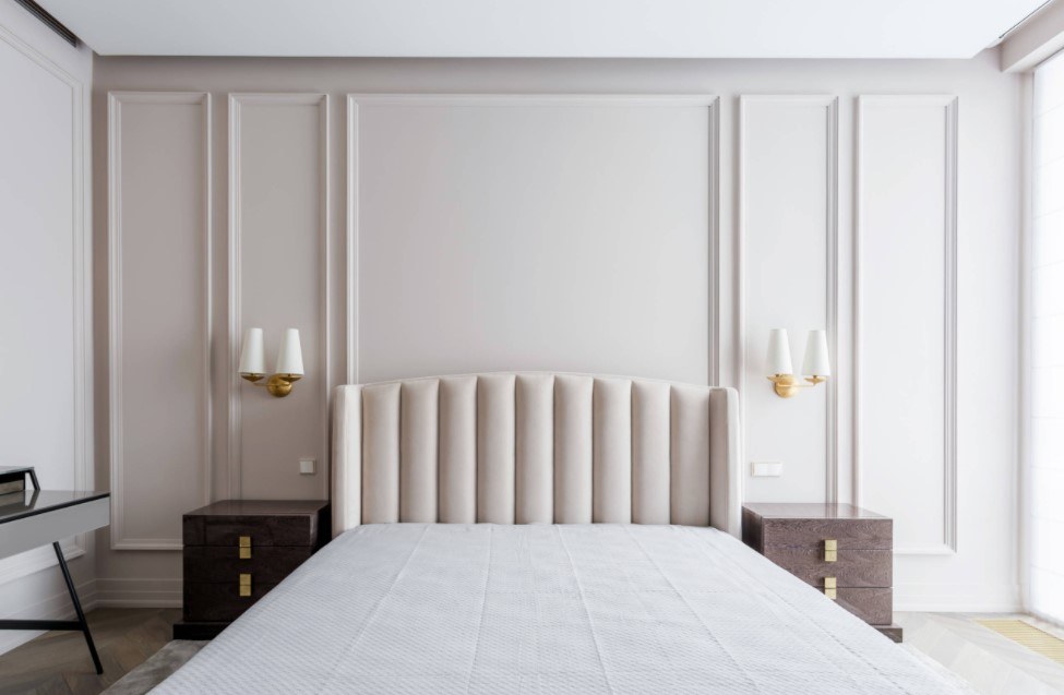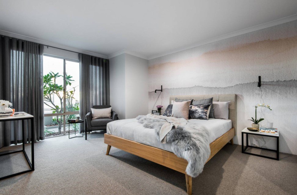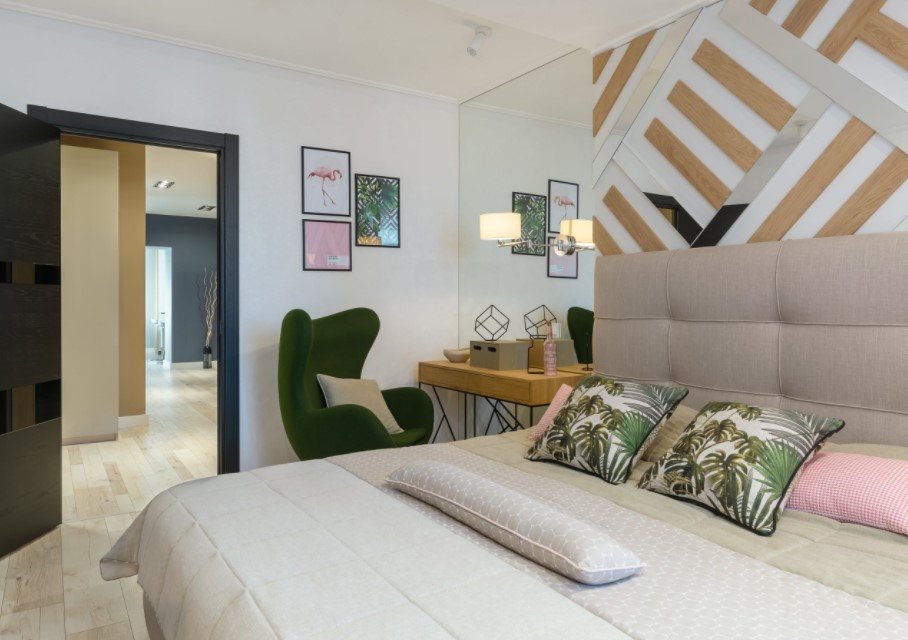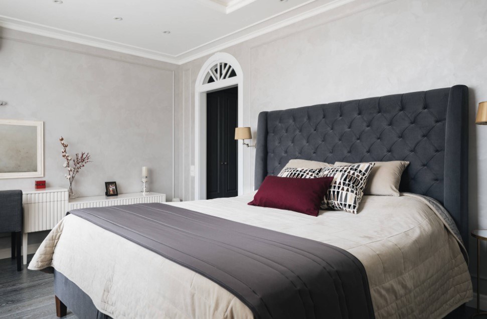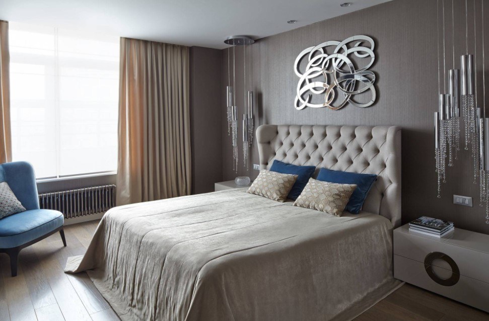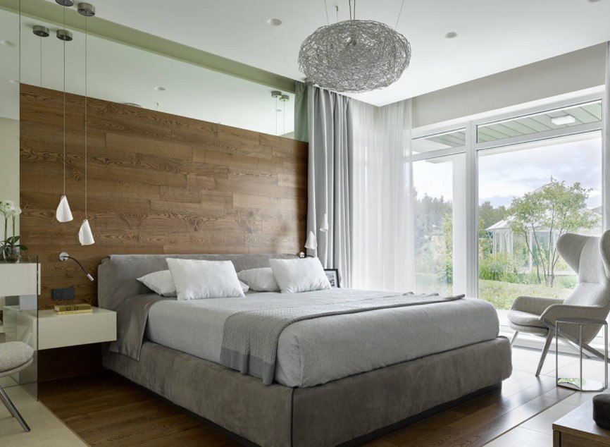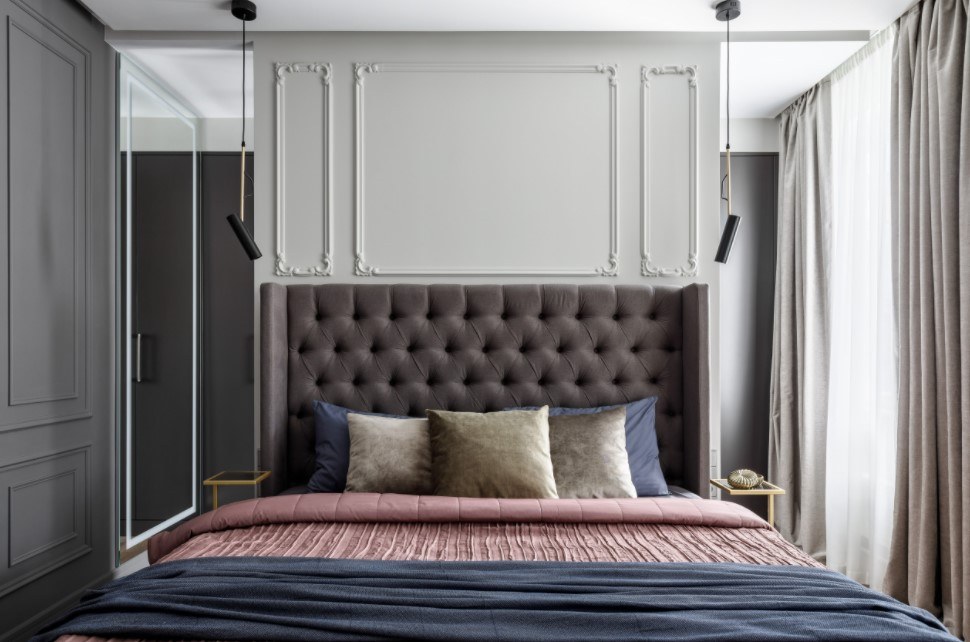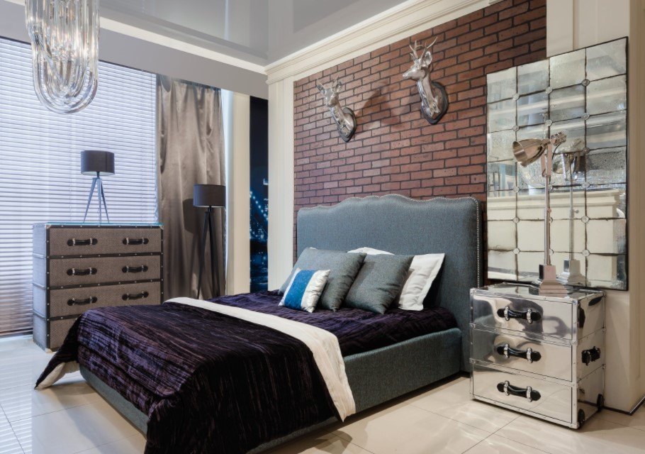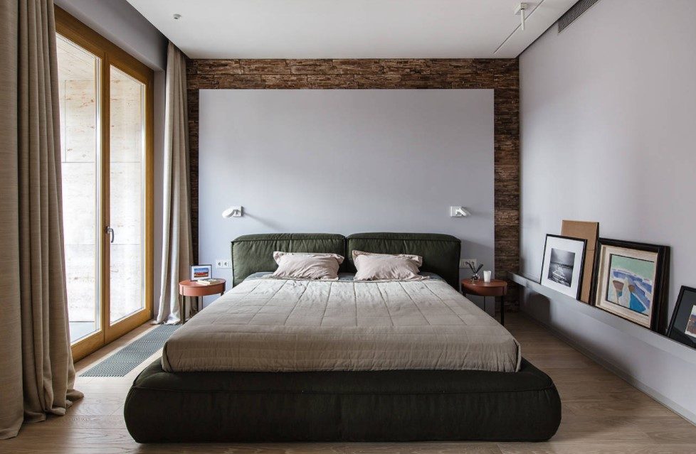 Для такого акцента чаще всего выбирается стена за изголовьем кровати. Она также поможет сделать контуры комнаты более квадратными, если спальня характеризуется вытянутой планировкой.