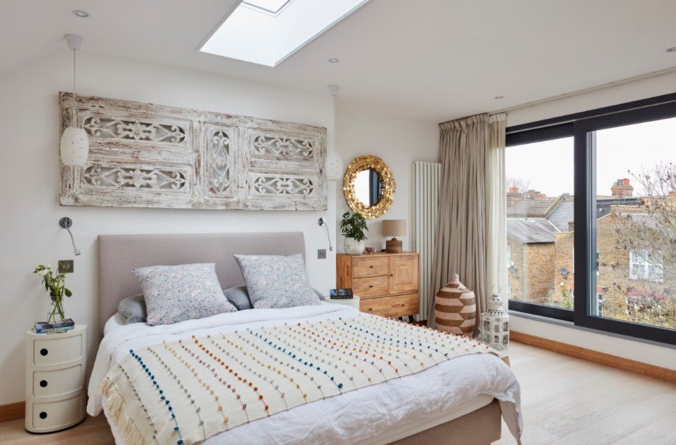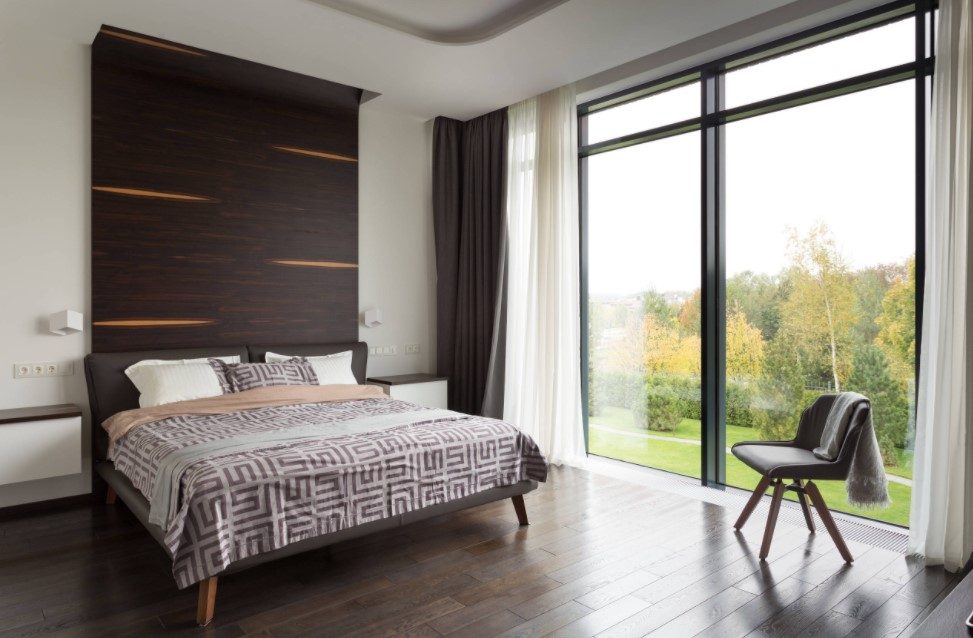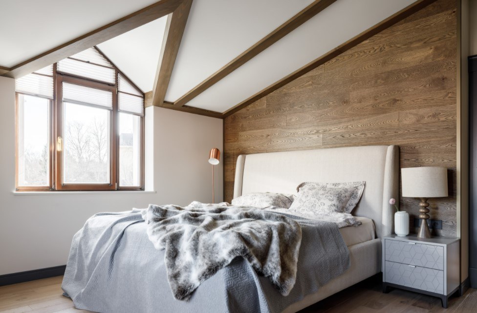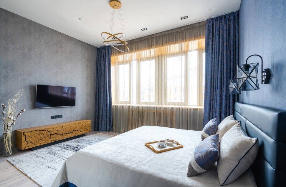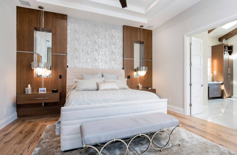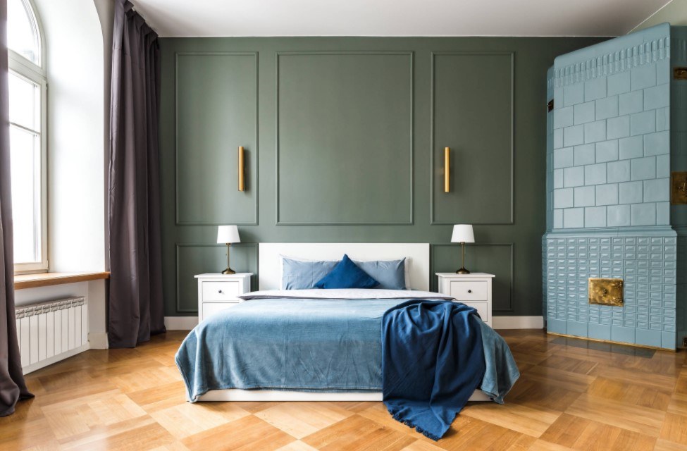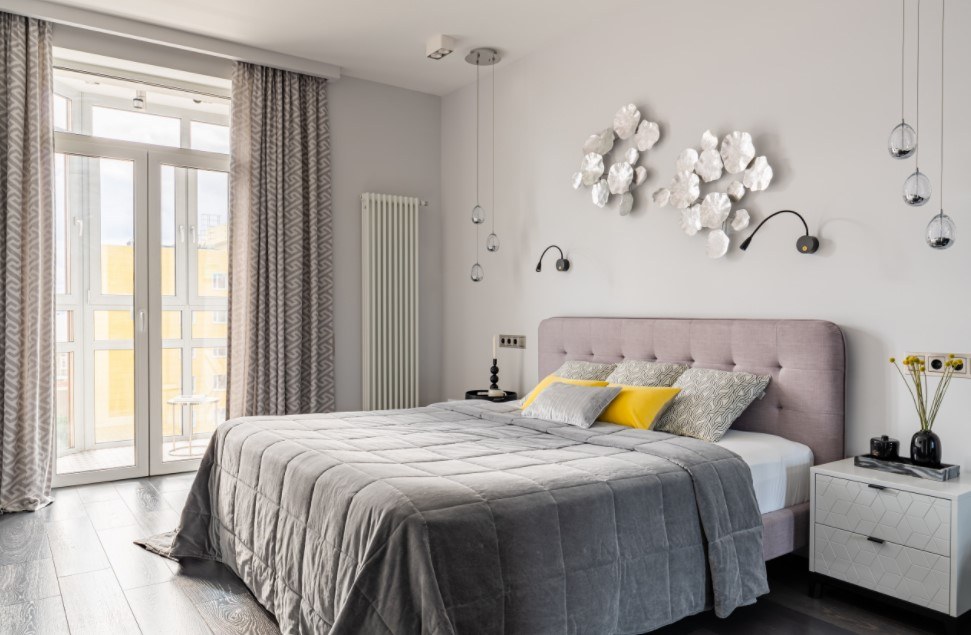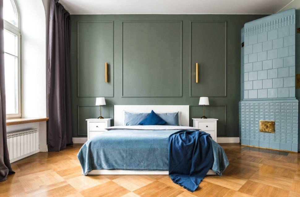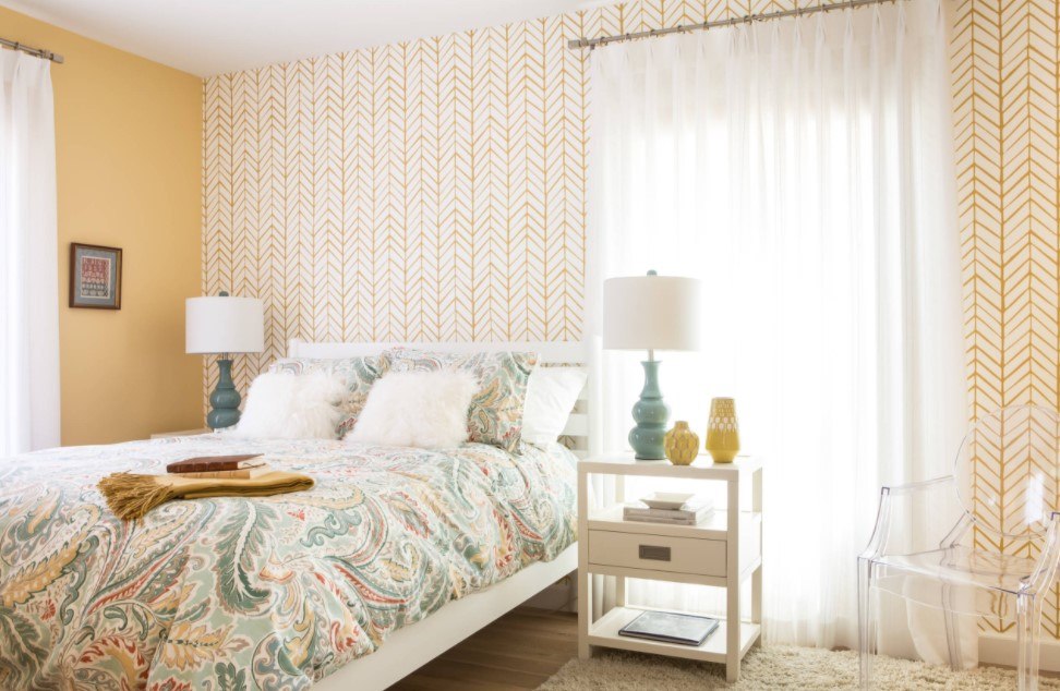 Для такого акцента чаще всего выбирается стена за изголовьем кровати. Она также поможет сделать контуры комнаты более квадратными, если спальня характеризуется вытянутой планировкой.