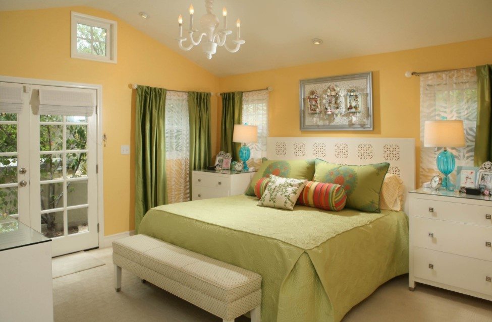 Насыщенные цвета в небольшой спальне можно сбалансировать светлой мебелью. Или использовать их в небольшом умеренном количестве: