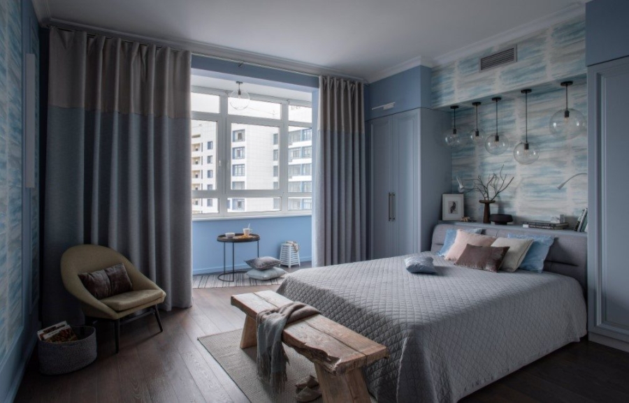 Наконец, в минималистическом стиле область хранения выносится за пределы спальни или отделяется перегородками и шторами, чтобы визуально была видно только кровать и тумбочки.