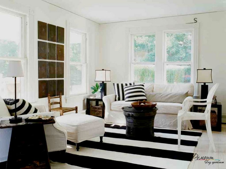 Если говорить о чисто белом интерьере, то выглядит он уж очень статично, то есть неподвижно, поэтому, чтобы такая комната не выглядела уныло, как замок Снежной королевы, добавим некую живость, то есть динамичность. Сделать это просто за счет использования предметов максимальной сложных и оригинальных форм. Например, необычные статуэтки или икебана из веток в вазе.