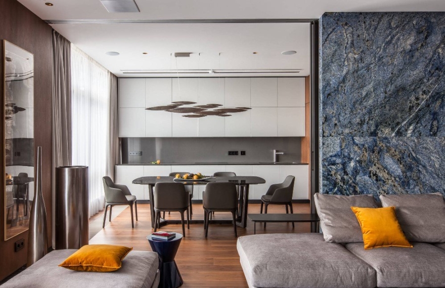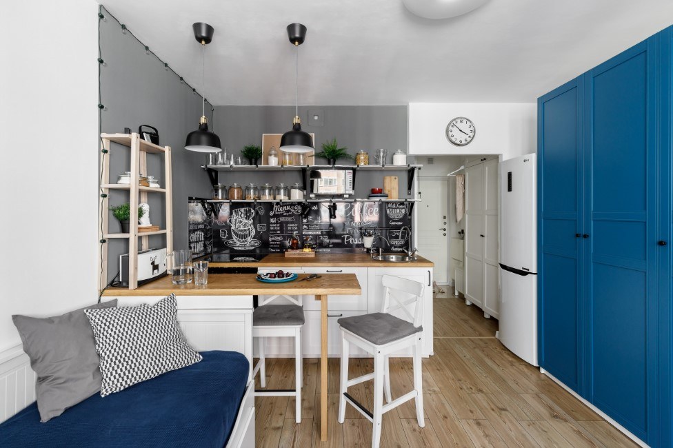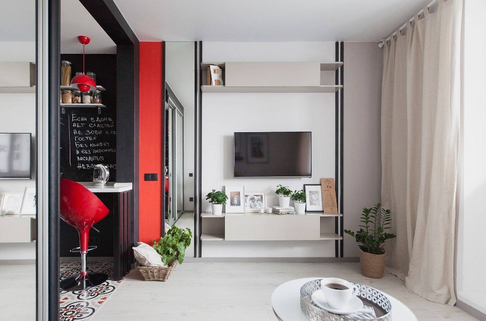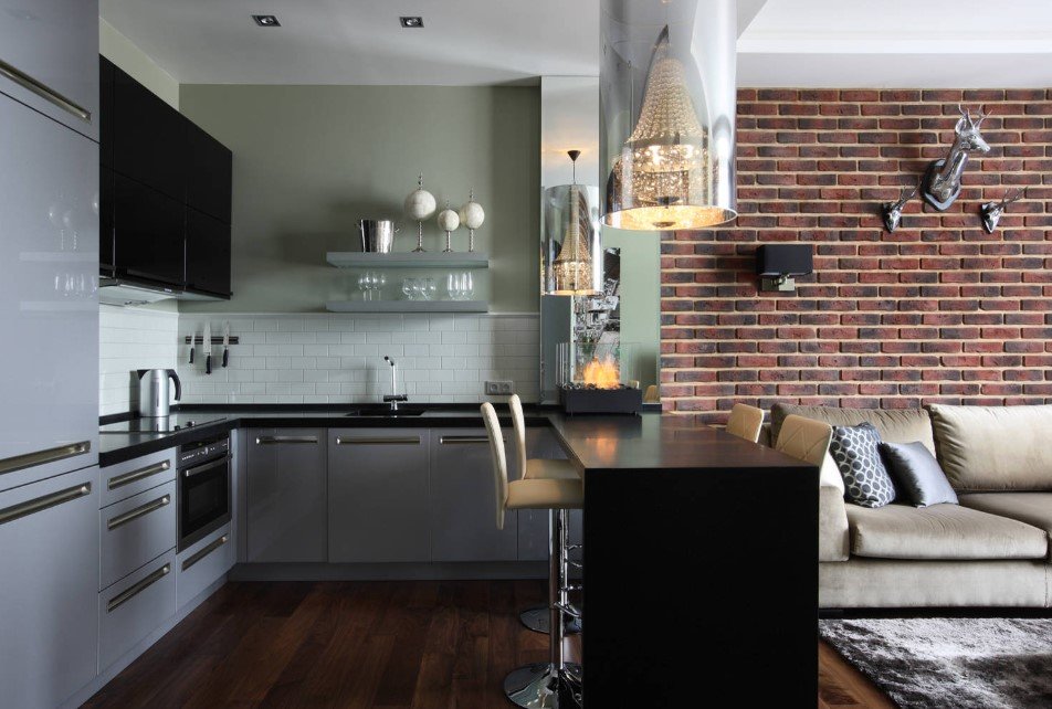 Она поможет сэкономить место, так как является и перегородкой, и обеденным столом. Зачастую барная стойка используется в квартирах-студиях, так как выглядит она необычно и современно.