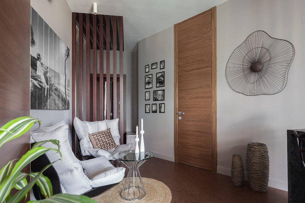 Очертить пространство с помощью искусственной зелени будет наиболее просто. Тем более, что она предполагает демонтаж по необходимости. Использовать можно, как готовые панно, так и разработать самостоятельные вариации, которые обеспечивают плавный переход из одной зоны в другую.