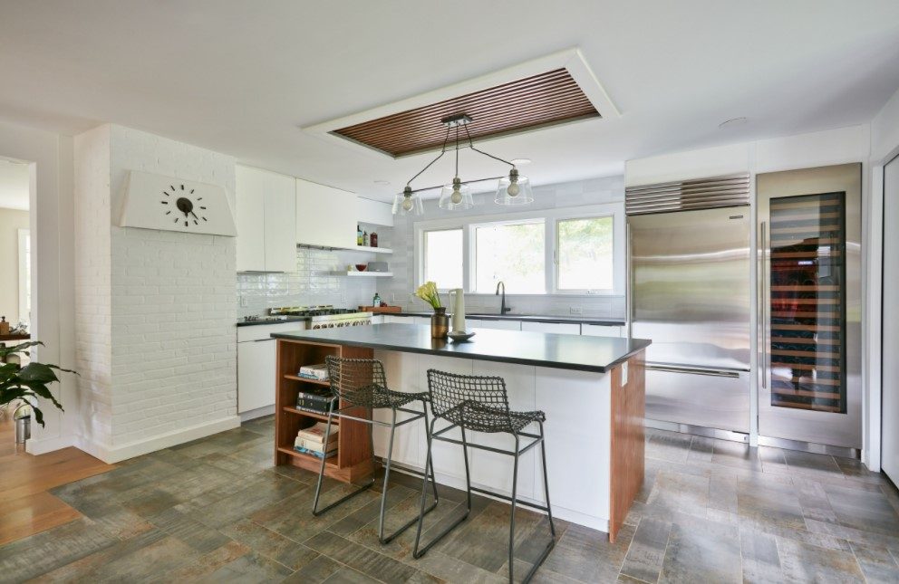 В традиционном понимании кухня делится на первые две зоны с рабочим и обеденным пространством. Однако вариантов может быть много. Например, столовой зоной может служить барная стойка и являться разграничителем части для готовки и для отдыха. Также, как говорилось выше, большая кухня может стать гостиной, а зал – спальней.