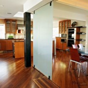 Главным свойством раздвижной перегородки является возможность выбирать между изолированным помещением и большой территорией, не ограниченной лишними стенами. Самым популярным вариантом является объединение гостиной и кухни, разделенных границами раздвижных перегородок. При этом общая планировка жилья не будет значительно нарушена.
