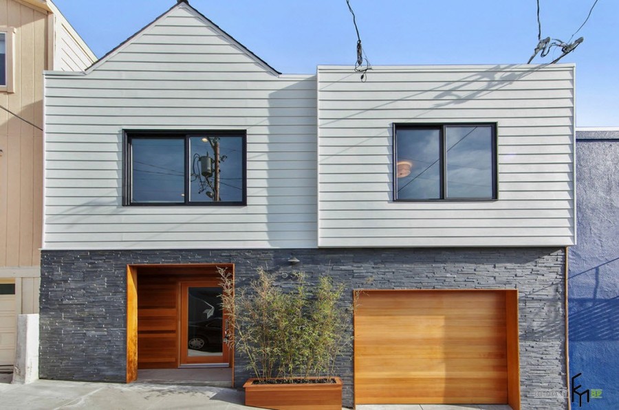 Экстерьер коттеджа сразу дает нам возможность составить впечатление о домовладельцах. Простой и лаконичный дизайн отделки позволяет думать, что и внутри здания все будет подчинено строгости линий и нейтральности цветовой гаммы.