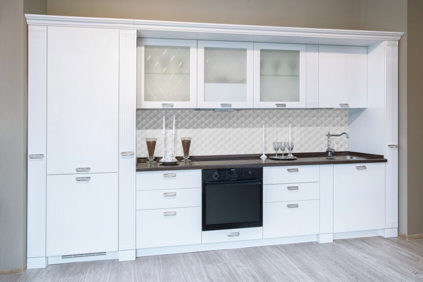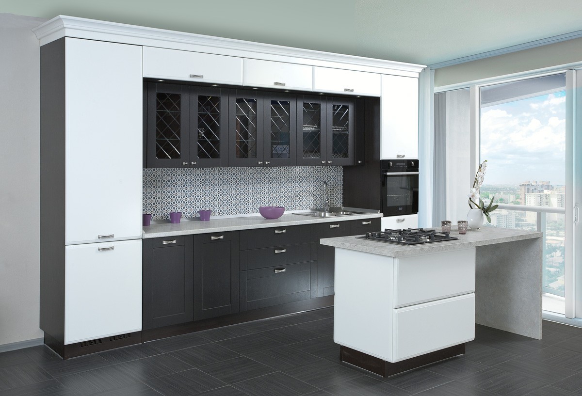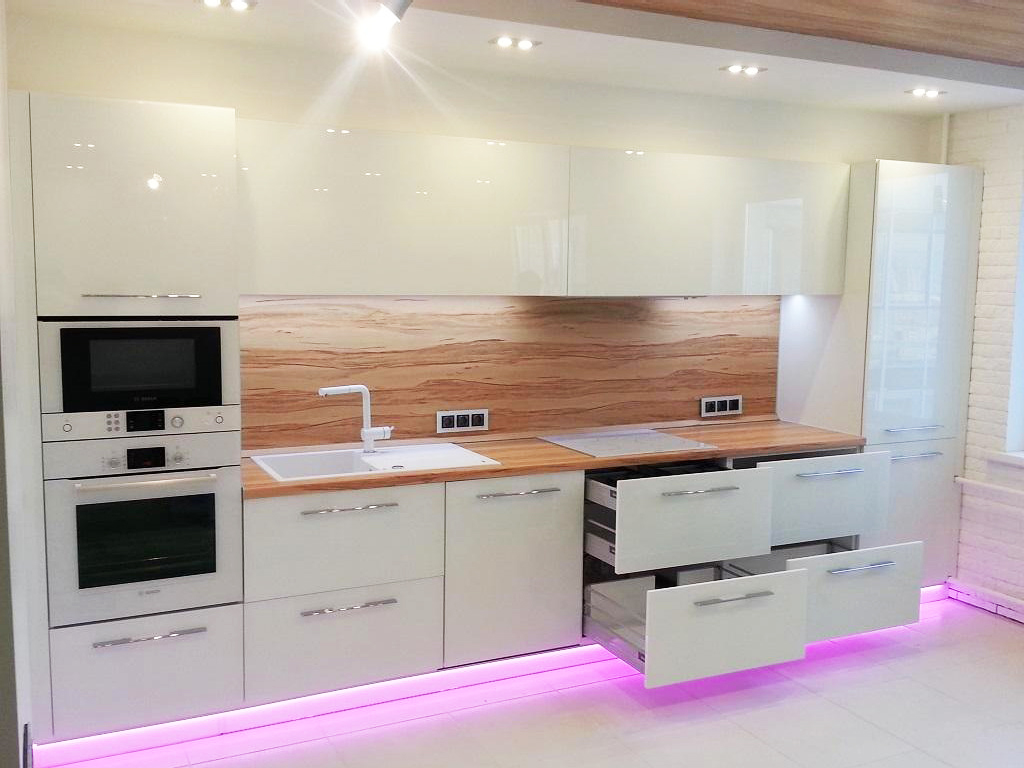 Прямые кухни от стены до стены и до потолка