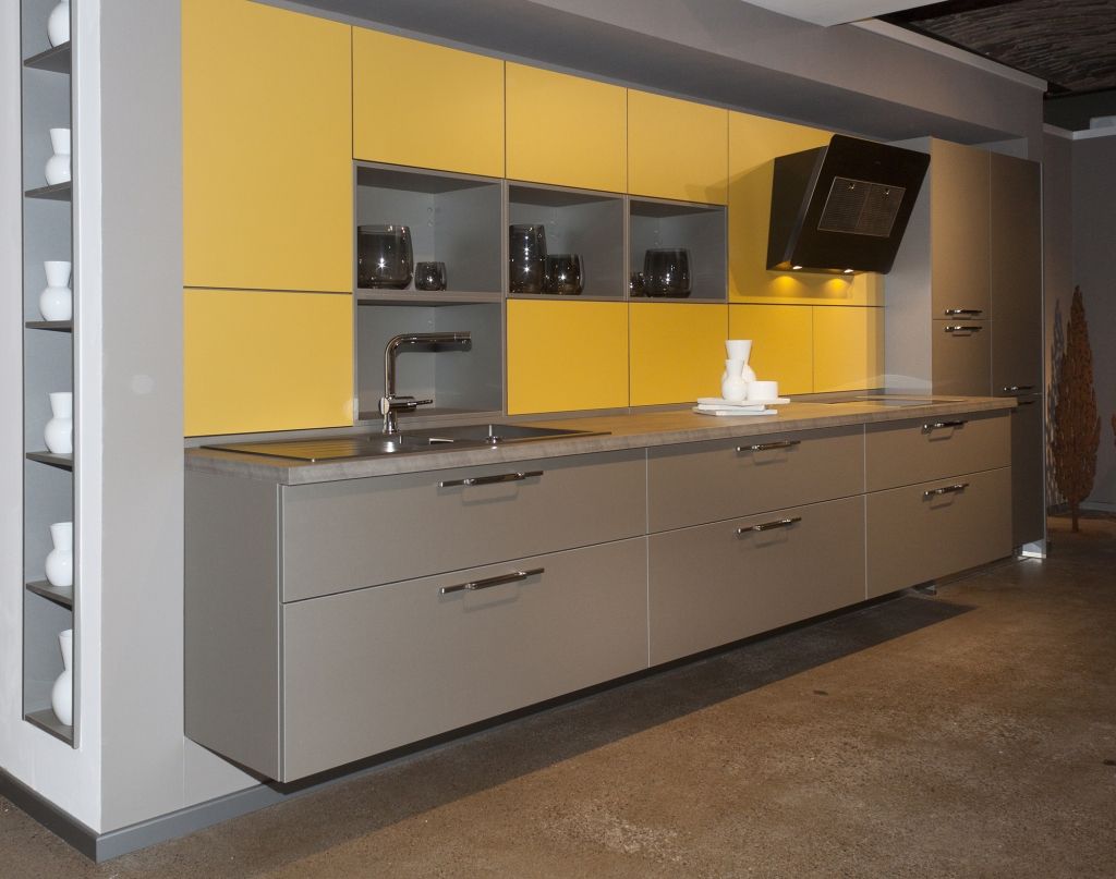 Однорядные конструкции идеально подходят для мини-кухни. Мебель для одной стены занимает мало места, и ее также легче всего составить вместе с остальной частью комнаты, потому что она визуально меньше бросается в глаза в минималистском стиле, а яркие цвета гостиной могут отлично гармонировать с гарнитуром.