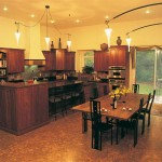 Для кухонных помещений применяют самые разнообразные напольные покрытия: от традиционных или старинных способов отделки до самых современных и необычных покрытий. Это и традиционная облицовка плиткой, и линолеум, и ламинат или даже лакированный паркет. Однако полы на кухне из пробкового материала всегда смотрелись и будут смотреться очень презентабельно, дорого, а главное – уютно и экологично.