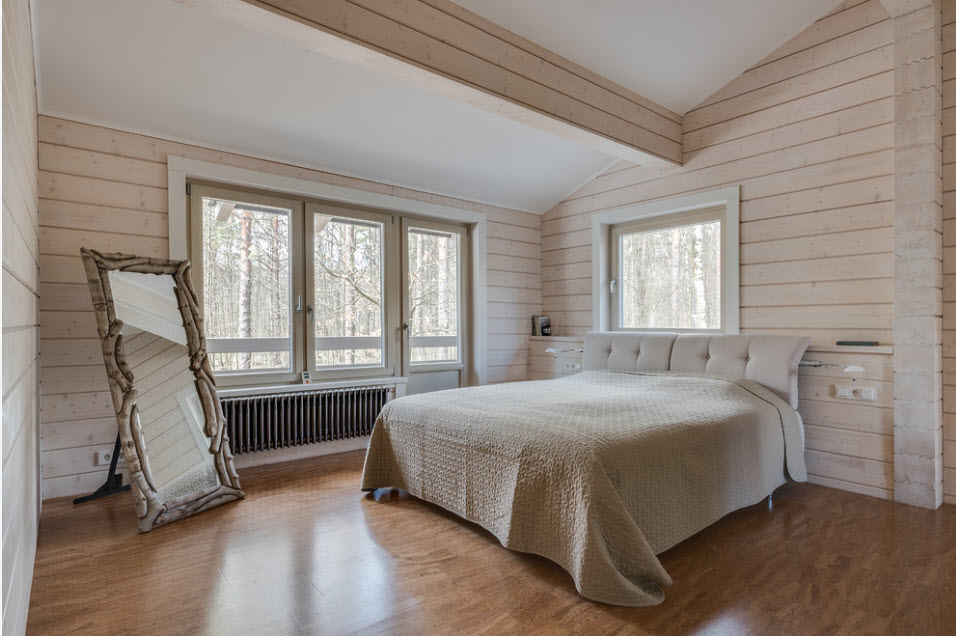 Преимущества подобного оформления зеркала вполне очевидны. Можно максимально точно подобрать конструкцию и размеры рамки в соответствии с общим направлением дизайна интерьера. Так, зеркало станет неотъемлемой частью окружающей обстановки и будет смотреться очень гармонично.