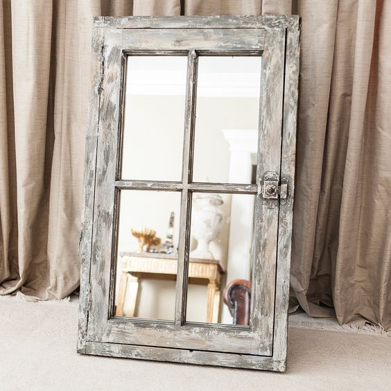 Большое зеркало в раме из старого окна или двери придаст интерьеру нотку вальяжности и колоритной старины. Немного фантазии, уместного декора и у вас получится действительно уникальный, эксклюзивный предмет интерьера.