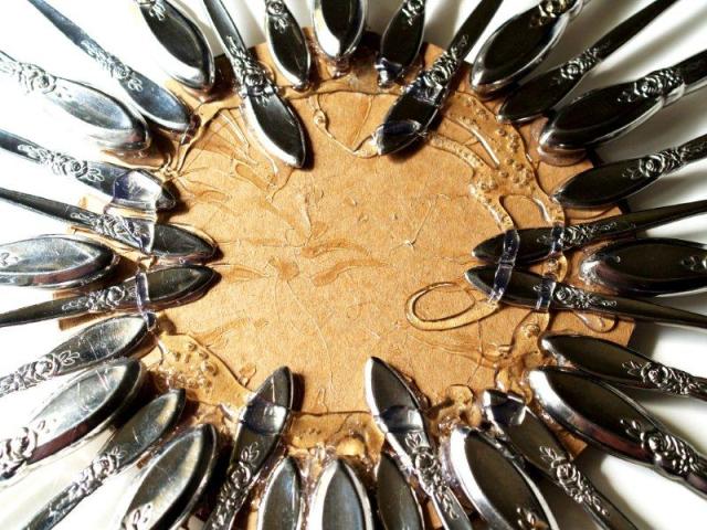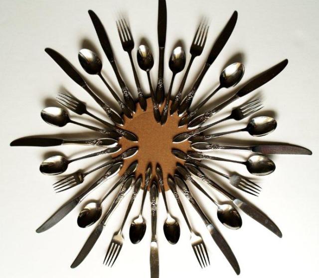Весьма экстравагантно, но от того не менее шикарно и оригинально будет выглядеть на кухне зеркало в рамке из столовых приборов. Чтобы сделать такую вещь своими руками, приготовьте следующие материалы: