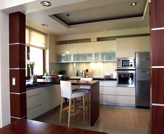 6. Установка двери. По своему усмотрению можно оборудовать кухню дверью или сделать арку. Двери тоже бывают пластиковые или деревянные. Пластиковые более устойчивы к внешним факторам: не рассыхаются, не деформируются, более герметичны, влагостойки, имеют высокую звуко- и теплоизоляцию. Цена на пластиковые двери тоже весьма демократична. Правда, по натуральности и экологичной безопасности они очень уступают деревянным, да и последние технологии позволяют обработать дерево таким образом, чтобы максимально повысить его эксплуатационные характеристики.