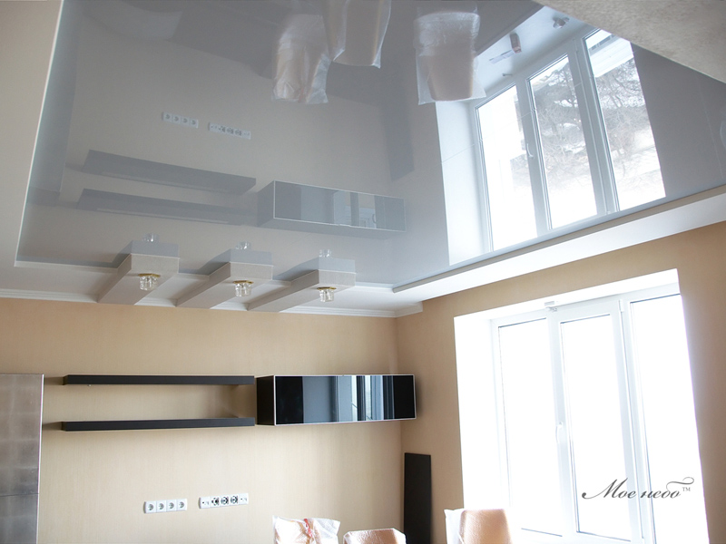 - натяжной потолок – влагоустойчив, неприхотлив к уходу, долговечен, скрывает все дефекты поверхности и коммуникации. Устойчив к затоплениям соседей сверху. К недостаткам покрытия относят его дороговизну, опасность механических повреждений, а также необходимость монтажа профессионалами.