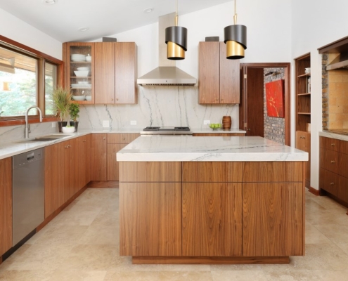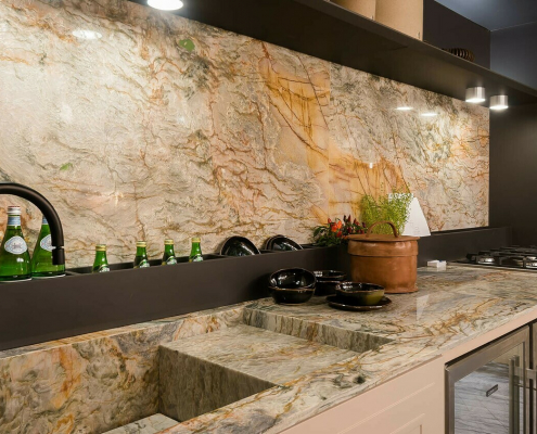 - искусственный камень или мозаика – нетривиальный вариант оформления кухни. Эксклюзивный, но дорогостоящий. Укладку этих материалов лучше доверить профессионалам.