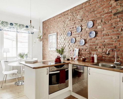 Более дорогостоящим способом отделать стены на кухне является их оштукатуривание. Штукатурка может быть структурная или фактурная, она является прекрасной возможностью создать на вашей кухне настоящее произведение искусства.