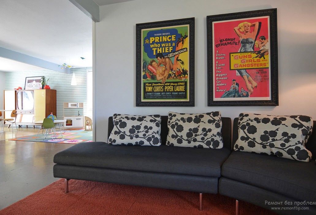 На стены можно также повесить старые плакаты, которые были когда-то модными.