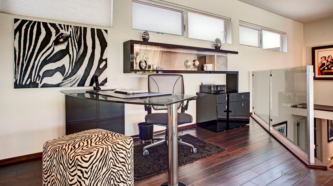 Зебра отлично подходит и для вашего рабочего кабинет. В настоящее время очень популярно декорирование стен, которое можно выполнить с помощью фотообоев, интерьерных наклеек. Мотивы африканского стиля проще всего и дешевле можно выразить в виде фотообоев с видами африканских животных, в частности, зебры