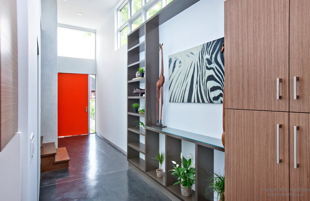 Ковровая дорожка в коридоре с полом, покрытым ламинатом, и выполненная в виде шкуры зебры будет не только украшением его интерьера, но и одновременно защитой пола от износа, т.к. коридор – самая активная и подвергающаяся износу зона в квартире