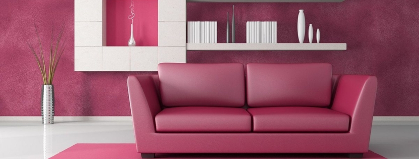 Если вы хотите иметь розовые стены, то можно выбрать только одну из них. Помните, что разноцветная стена в теплых тонах всегда будет казаться ближе, чем есть на самом деле. Поэтому выбирайте более меньшую поверхность в гостиной. Также было бы идеально, если поверхность будет освещена естественным светом, то есть рядом с большим окном.