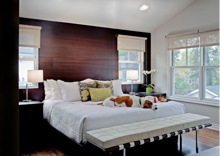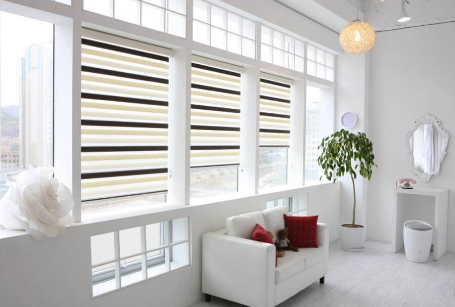 - «день-ночь» – двойные кассетные рулонные шторы с системой пружинного управления. Конструкцией предусмотрено использование двух разных тканей (лучше всего подбирать ткани, степень пропускания света которых существенно отличается). В таком случае одна из них будет использоваться в дневное время суток, вторая же только для ночного времени. Окно закрывается в двух направлениях, в зависимости от направления будет отличаться и тип ткани. Особенно востребованы рулонные шторы на первом этаже, в частном секторе или в случае, когда соседний дом расположен чересчур близко.
