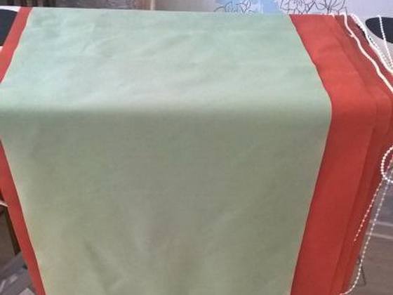 На рабочую поверхность кладем штору и по центру прикладываем ткань.