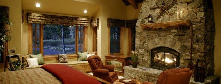 Для создания более радикальных вариаций кантри облицовка стен требует дополнения массивных элементов – натуральный камень. Камень очень сложный материал для облицовки стен. Ему не занимать эстетичности, но фактурность и игра теней на стенах делают помещение слишком мрачным и гнетущим. В лучшем исполнении грубого кантри камень выступает как облицовочный материал для отдельных зон в интерьере – камина, рабочей зоны на кухне или барной стойки.