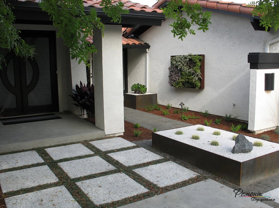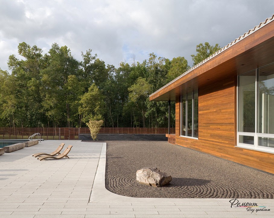 Сад камней должен гармонично сочетаться со всем участком, фасадом и интерьером дома. Даже из окна созерцание красивого пейзажа должно вызывать положительные эмоции и способствовать философским размышлениям.