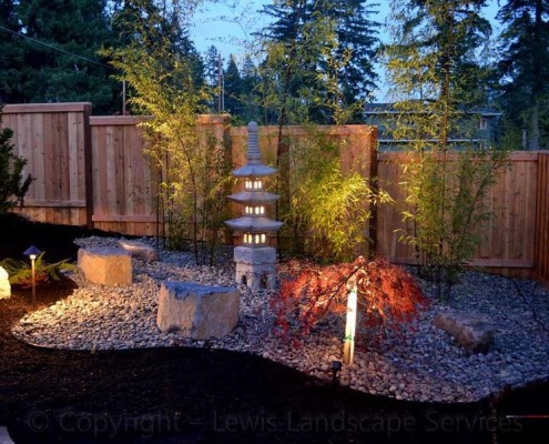 Садовая или парковая зона в японском стиле не мыслима без скульптурных или архитектурных украшений. Самые распространенные из них – светильники разных конфигураций: низкие или высокие, с широкой крышкой или в форме домика с заостренной крышей. Такие каменные фонари создают гармонию со всеми остальными элементами сада камней: