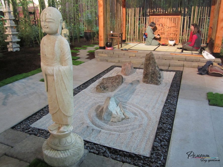 К установке статуи Будды в саду нужно подходить с большой осторожностью, т.к. для религии Японии это культовое сооружение, которому необходимо поклоняться. Если же вы все-таки решились поставить скульптуру, изображающую Будду, то нужно изучить и понять суть этого образа. Скульптура должна обязательно устанавливаться на возвышении, перед ней необходимо обустроить место для подношений, пусть и символических, она должна быть видна из разных уголков сада: